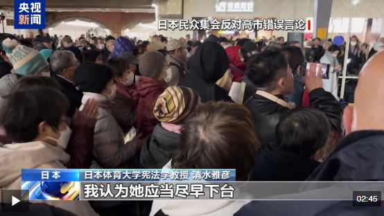 日本體育大學(xué)憲法學(xué)教授 清水雅彥:高市的相關(guān)發(fā)言無(wú)論從日本安保法案,還是《聯(lián)合國(guó)憲章》的角度來(lái)看,都存在嚴(yán)重問(wèn)題。從這個(gè)意義上講,高市早苗否定《中日聯(lián)合聲明》,無(wú)視法律并且暴露自身無(wú)知,是東亞地區(qū)的不穩(wěn)定因素。因此,她的那番發(fā)言應(yīng)撤回,如果無(wú)法撤回,我認(rèn)為她應(yīng)當(dāng)盡早下臺(tái)。