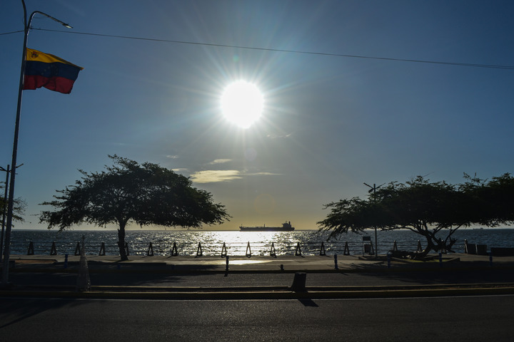 2025年12月23日,一艘油輪停泊在委內瑞拉蘇利亞州馬拉開波湖上。當地目擊者日前向新華社透露,23日在該國西部馬拉開波湖這一核心產油區(qū),仍可見油輪正在等待出?;虼┻^拉斐爾·烏達內塔將軍大橋進入巴霍格蘭德港口。新華社發(fā)