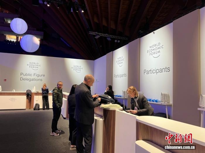 當(dāng)?shù)貢r(shí)間1月19日,世界經(jīng)濟(jì)論壇2026年年會(huì)在瑞士東部小鎮(zhèn)達(dá)沃斯拉開(kāi)帷幕。圖為參會(huì)代表領(lǐng)取參會(huì)證件。中新社記者 馬秀秀 攝
