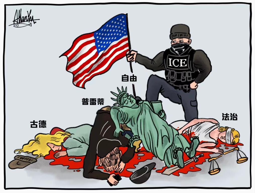 明特所說的ICE,在2003年由美國移民和歸化局(INS)等機構(gòu)整合而成,目前是美國國土安全部下屬最大的警察與海關(guān)機構(gòu)。德國《每日鏡報》網(wǎng)站報道,去年夏天以來,ICE執(zhí)法人員在31起事件中使用槍支并造成11人傷亡,另有32人在羈押期間死亡,目前有約7萬人被關(guān)押在ICE的拘留所。