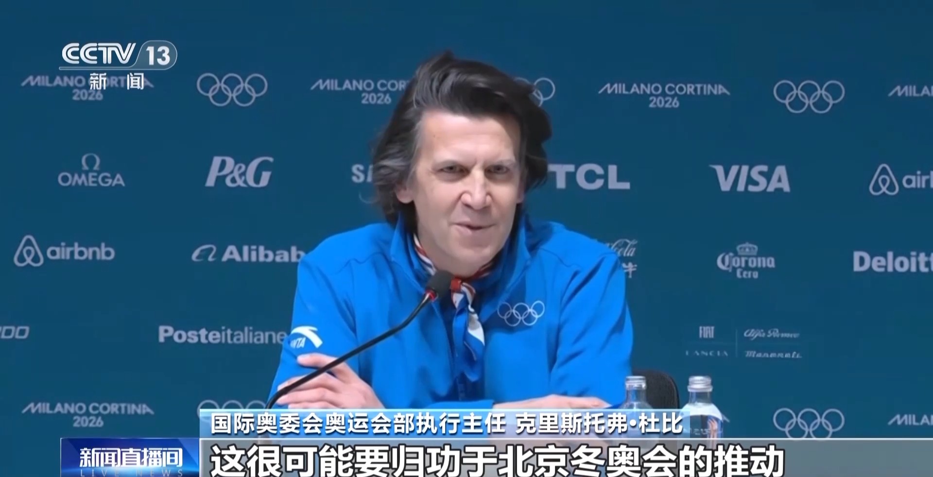當(dāng)?shù)貢r(shí)間12日,在米蘭冬奧會主媒體中心出席例行新聞發(fā)布會時(shí),國際奧委會奧運(yùn)會部執(zhí)行主任克里斯托弗·杜比回顧了參與北京冬奧會籌備工作的經(jīng)歷。他高度評價(jià)了北京冬奧會的可持續(xù)發(fā)展理念與技術(shù)創(chuàng)新,表示這些成果為后續(xù)奧運(yùn)會提供了寶貴經(jīng)驗(yàn)。
