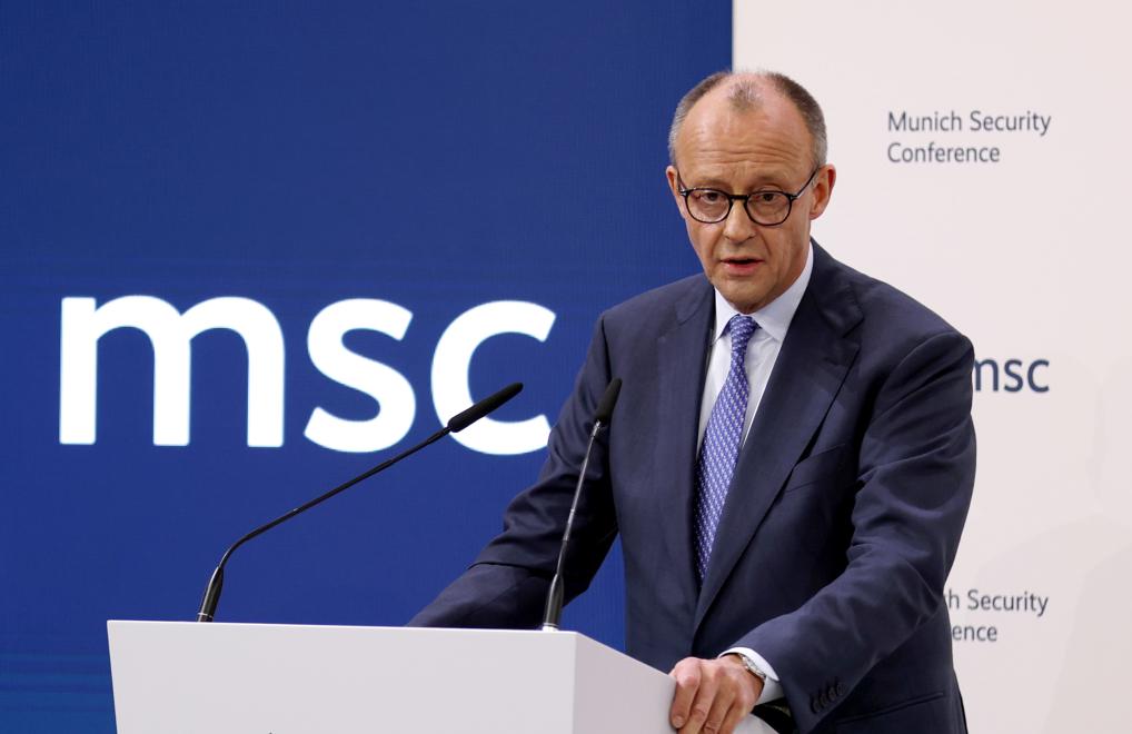 2月13日,在德國(guó)慕尼黑,德國(guó)總理默茨在第62屆慕尼黑安全會(huì)議開幕式上致辭。新華社記者李穎攝