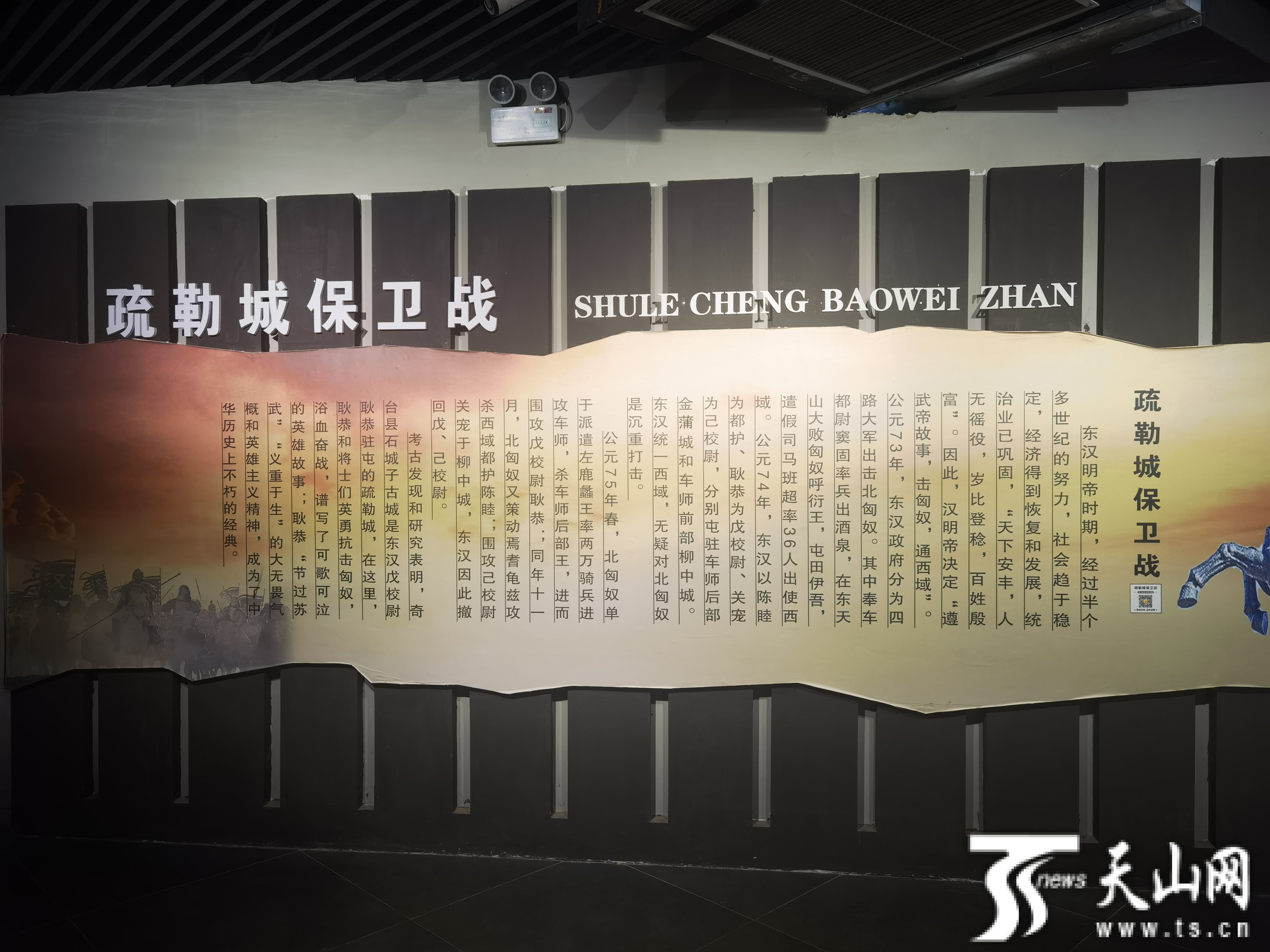 奇臺(tái)縣博物館疏勒城保衛(wèi)戰(zhàn)展臺(tái)介紹。 天山網(wǎng)-新疆日報(bào)記者銀璐攝