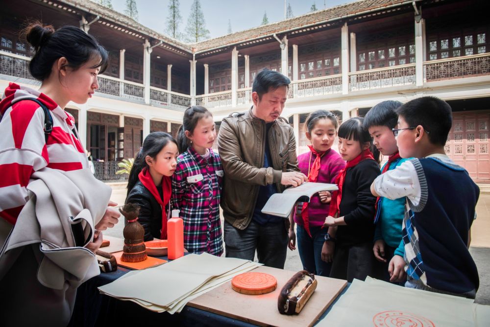藏用之間,文字被喚醒。南潯實(shí)驗(yàn)小學(xué)自2015年起與嘉業(yè)藏書樓合作建立雕版印刷傳習(xí)基地,讓雕版文化走進(jìn)了校園,目前該校已培養(yǎng)了200多名雕版印刷的小傳人?!拔覀兿Mㄟ^學(xué)生走進(jìn)來參觀,我們走出去講解,把藏書文化傳播得更廣?!编嵶谀姓f。