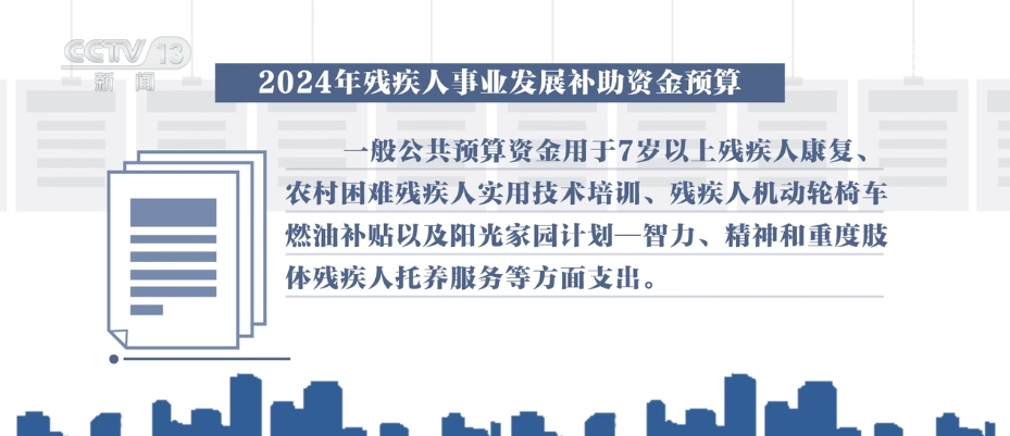 一般公共預(yù)算資金用于7歲以上殘疾人康復(fù)、農(nóng)村困難殘疾人實用技術(shù)培訓(xùn)、殘疾人機動輪椅車燃油補貼以及陽光家園計劃—智力、精神和重度肢體殘疾人托養(yǎng)服務(wù)等方面支出。