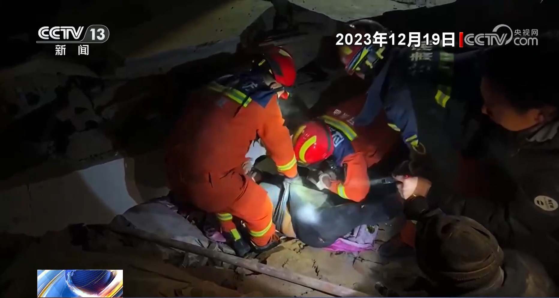 在大河家鎮(zhèn)康吊村,救援人員發(fā)現(xiàn)一家三口人被掩埋在廢墟中,其中一名婦女仍有生命體征。當晚當?shù)貧鉁匾堰_到-15℃。嚴寒條件下,被困者的生存時間被大幅壓縮,如果不能及時救出,極有可能因為失溫而造成二次傷害。