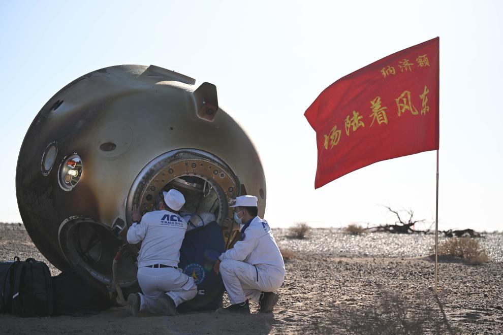 2024年4月30日,神舟十七號(hào)載人飛船返回艙在東風(fēng)著陸場(chǎng)成功著陸。