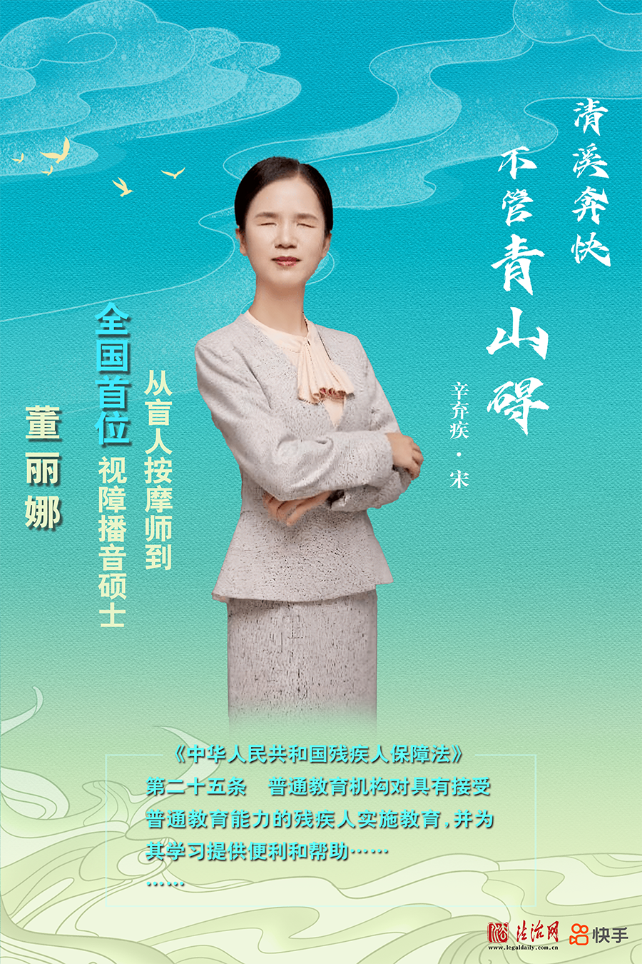 董麗娜先天弱視,10歲失明。但她自強(qiáng)不息、排除萬難,在22歲時(shí)爭取到視障人士播音培訓(xùn)機(jī)會(huì),獲得一級(jí)甲等普通話證書,成為《麗娜品讀時(shí)間》的主持人。2020年考入中國傳媒大學(xué)攻讀碩士學(xué)位,2023年畢業(yè)成為全國首位視障播音碩士。