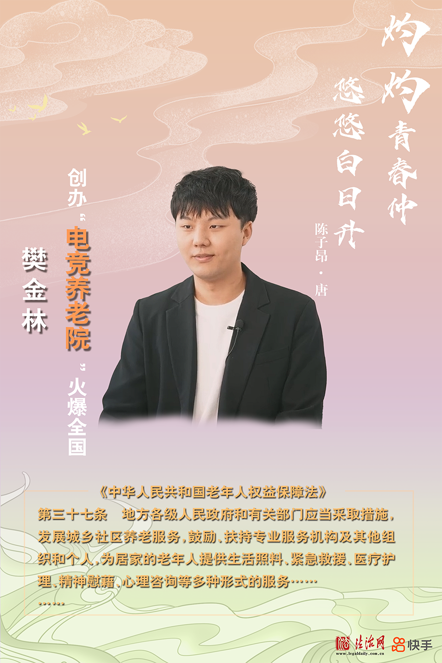 1997年出生的河南小伙樊金林(藝名:林燒)在河南省許昌市經(jīng)營了中國首個(gè)“電競(jìng)養(yǎng)老院”。他把年輕人里流行的電競(jìng)、蹦迪、桌游等帶進(jìn)養(yǎng)老院,還帶老人們一起拍攝短視頻,通過在社交平臺(tái)記錄他們?nèi)粘I畹狞c(diǎn)滴,讓越來越多的人了解到“原來老年生活還可以這樣有趣”。