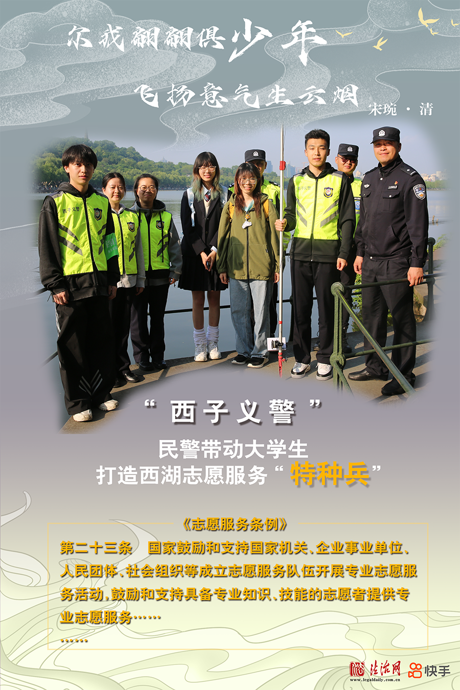 浙江省杭州市公安局西湖風(fēng)景名勝區(qū)分局組織公安巡特警、消防、交警、行政執(zhí)法、平安志愿者等各方力量參與社會(huì)治理工作,逐漸壯大的“西子義警”隊(duì)伍已成為西湖邊守望平安的重要力量。近期,一群朝氣蓬勃的青年大學(xué)生加入“西子義警”隊(duì)伍,共同營造更加和諧的西湖景區(qū)平安環(huán)境。