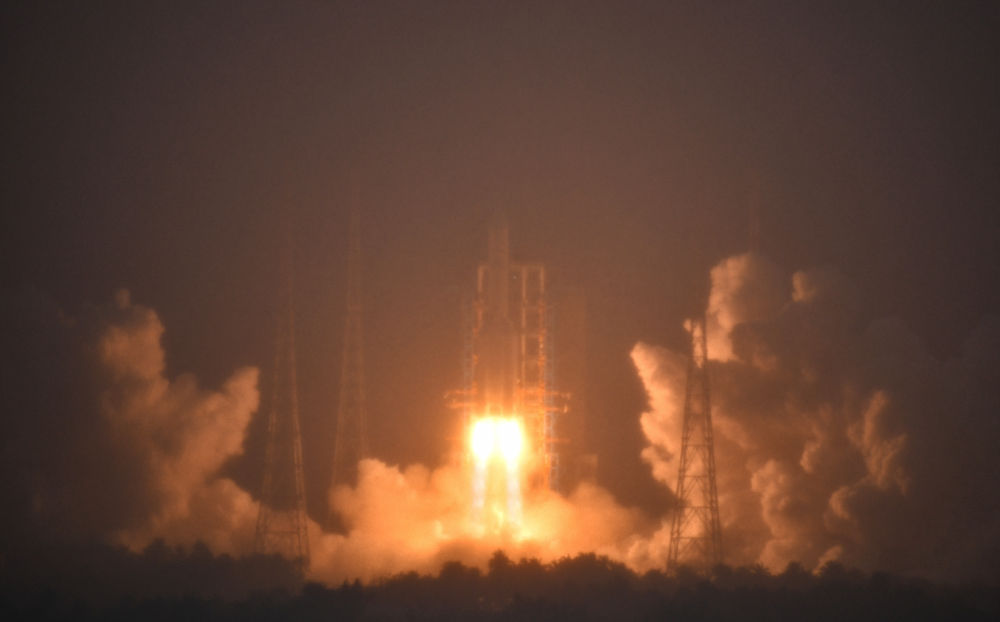 2024年5月3日,搭載嫦娥六號(hào)探測(cè)器的長(zhǎng)征五號(hào)遙八運(yùn)載火箭在中國(guó)文昌航天發(fā)射場(chǎng)發(fā)射。新華社記者 郭程 攝