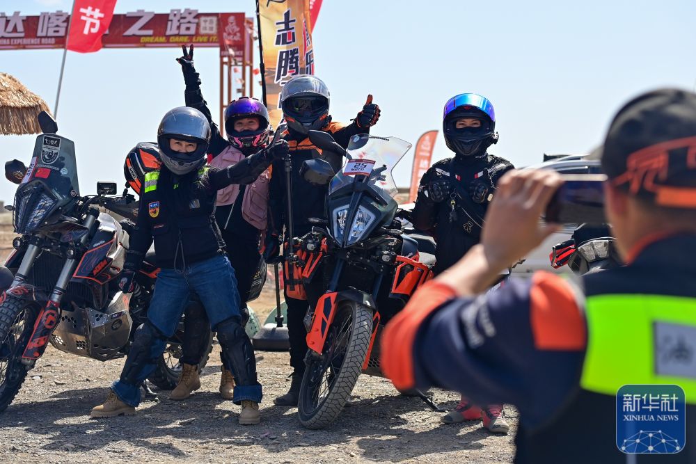 在新疆克拉瑪依市烏爾禾區(qū),車(chē)友在無(wú)人區(qū)體驗(yàn)越野騎行(5月2日攝)。