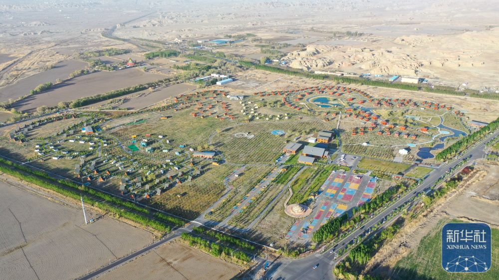 這是在新疆克拉瑪依市烏爾禾區(qū)拍攝的烏爾禾國(guó)際房車(chē)露營(yíng)公園(5月2日攝,無(wú)人機(jī)照片)。