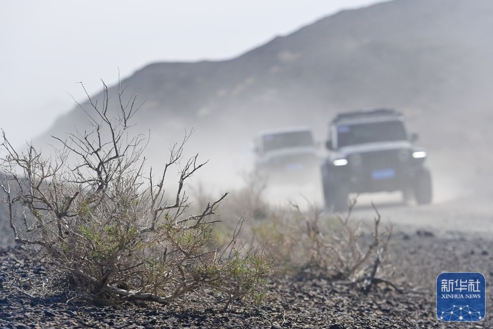 在新疆克拉瑪依市烏爾禾區(qū),車(chē)友駕駛越野車(chē)穿越無(wú)人區(qū)(5月2日攝)。