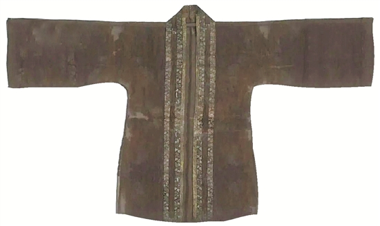 南宋紫褐色羅印金彩繪花邊單衣