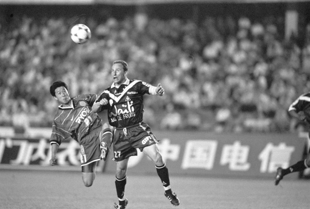 ↑1998年5月20日,98中法足球?qū)官愒诒本┕と梭w育場舉行。北京國安隊(duì)2比3不敵來訪的法國波爾多隊(duì)。
