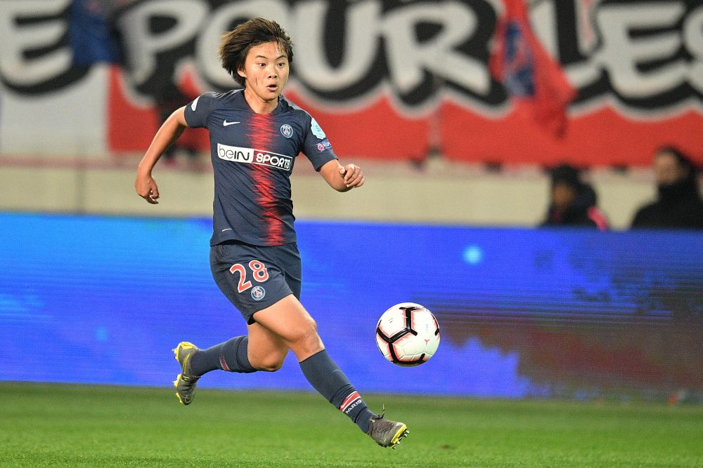 ↑2019年3月27日,巴黎圣日耳曼隊(duì)球員王霜在在女足歐冠1/4決賽次回合與切爾西隊(duì)的比賽中帶球突破。跟隨王霜的腳步 2022年,李夢雯、楊莉娜相繼加盟巴黎圣日耳曼俱樂部