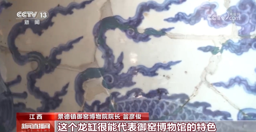 景德鎮(zhèn)御窯博物院院長 翁彥俊:我們的所有的展品都來自于我們身后的御窯廠,通過考古挖掘出來的。當年御窯對落選品的處理制度非常嚴格,不合格的就要打碎還集中掩埋,所以我們能夠發(fā)現這么多的碎片,并且能夠把它拼對出來。這個龍缸很能代表御窯博物館的特色。