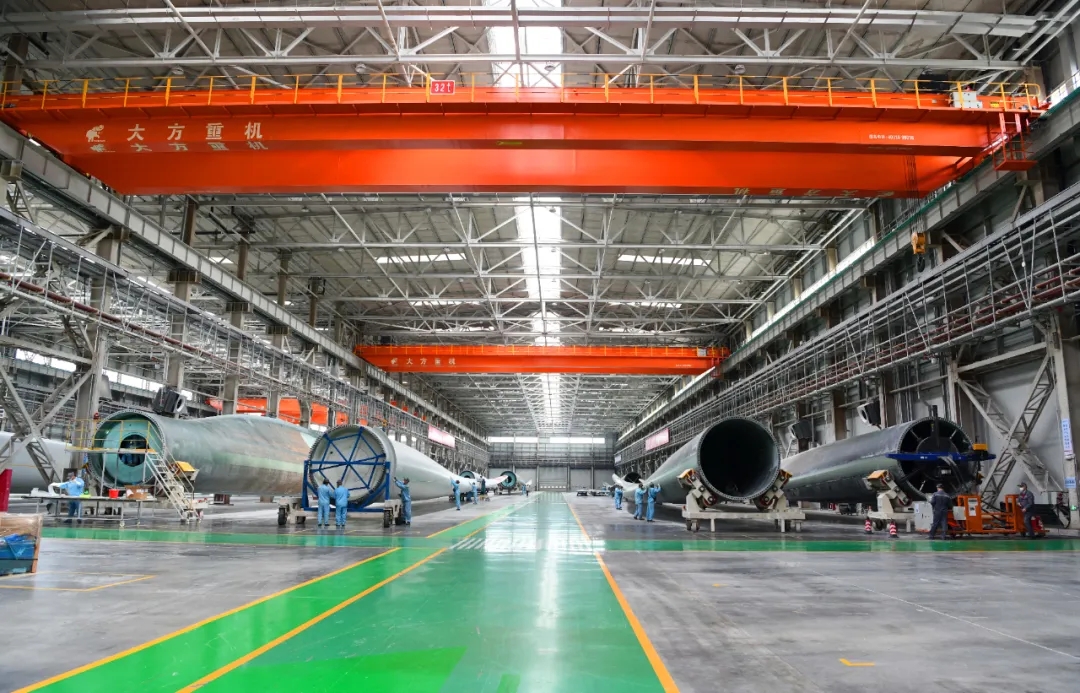 在松原市中車松原新能源裝備產(chǎn)業(yè)基地項目生產(chǎn)車間,工人正在加緊生產(chǎn)風電設(shè)備。該項目投資450億元,從簽約到開工僅用100天,從開工到產(chǎn)品下線只用了100余天。一個“風光”產(chǎn)業(yè)項目高速建成投產(chǎn)的背后,是吉林省發(fā)展風電產(chǎn)業(yè)決心的生動實踐。才原 攝(資料圖片)
