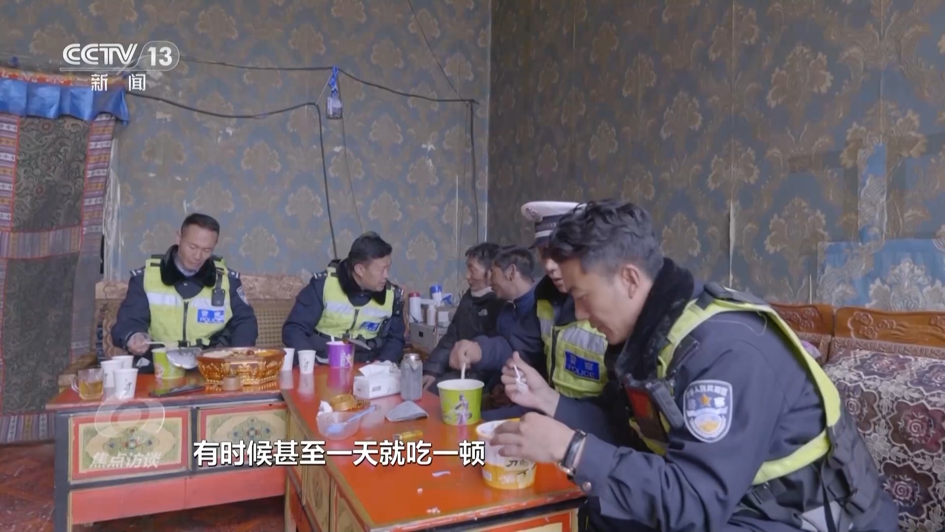 西藏那曲市安多縣公安局交警大隊大隊長 其美永忠:身體是絕對有影響的,腸胃方面主要是我們吃飯沒規(guī)律,有時候甚至一天就吃一頓。從來沒有一個人說過因個人的原因或者家庭的原因要下山,我們隊伍都是一起上山、一起下山的這種精神。