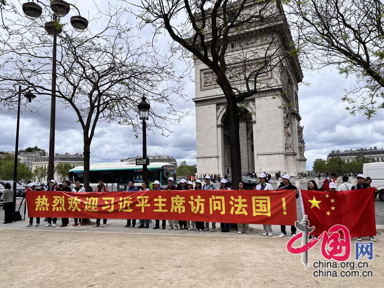 當(dāng)?shù)貢r(shí)間5月5日,在法華人迎接習(xí)近平主席到訪。受訪者供圖