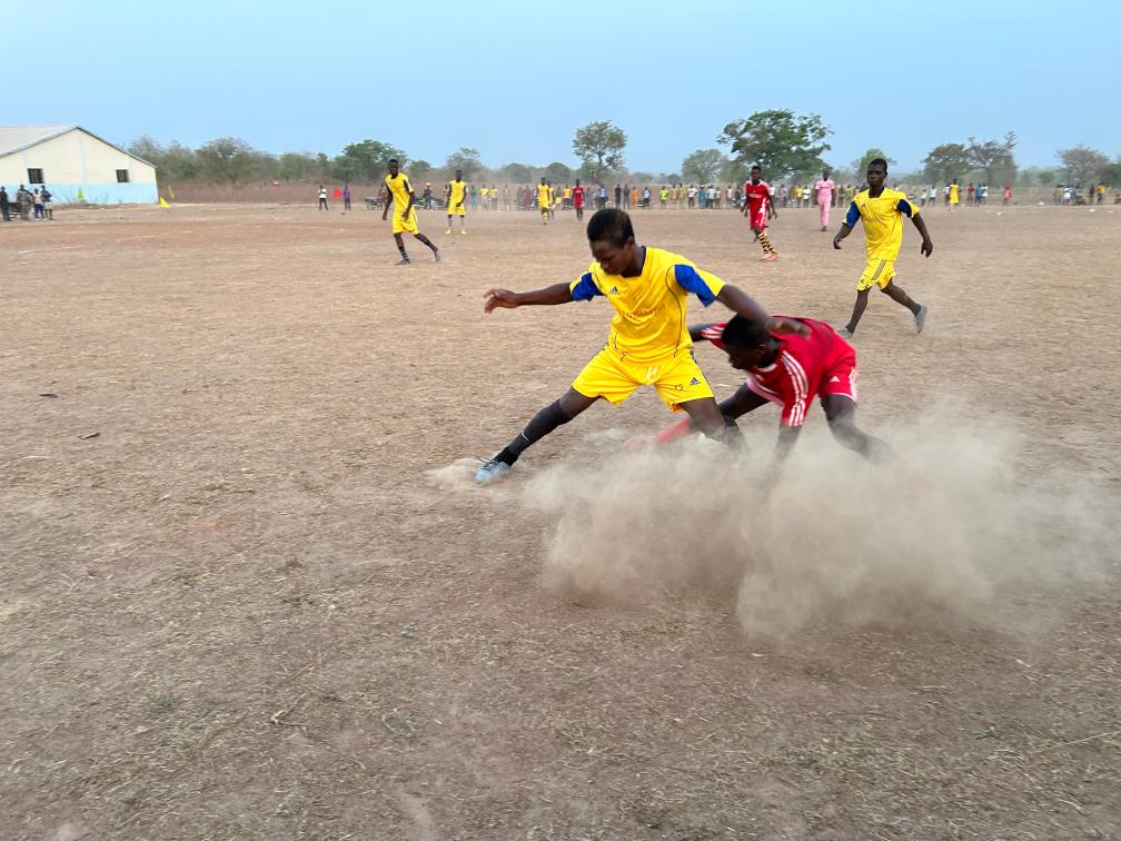 4月13日,貝寧當(dāng)?shù)卮迕袂騿T正在非洲“村超”賽場(chǎng)上踢球。受訪者供圖
