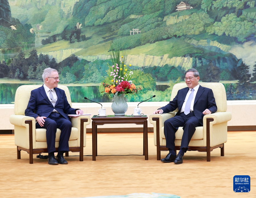 國務院總理李強5月15日上午在北京人民大會堂會見英中貿(mào)易協(xié)會主席古沛勤率領(lǐng)的英中貿(mào)協(xié)訪華團。