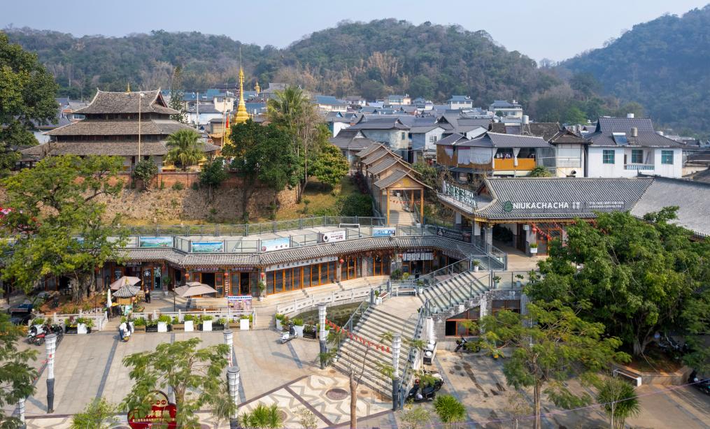 這是2024年3月19日拍攝的云南省孟連縣精品咖啡主題街(無人機照片)。新華社記者 陳欣波 攝