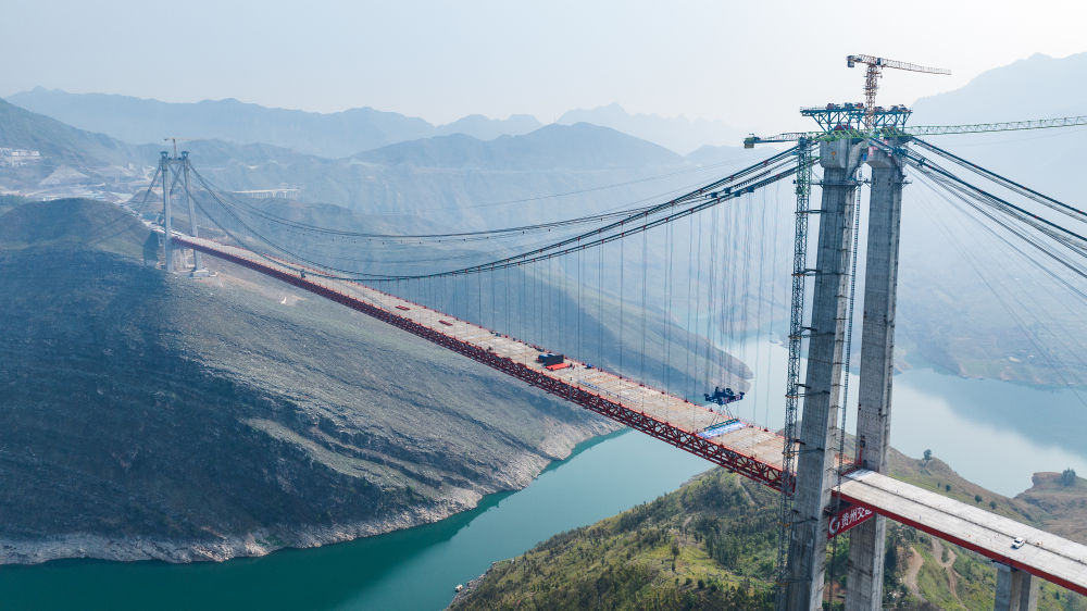 貴州交建集團(tuán)投資建設(shè)的納晴高速牂牁江大橋順利實現(xiàn)合龍,為納(雍)晴(隆)高速全線建成通車打下堅實基礎(chǔ)(4月28日攝,無人機(jī)照片)。新華社記者 陶亮 攝