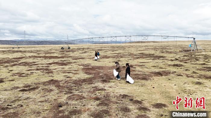 5月8日,瑪曲縣牧民自發(fā)在草原上撿拾垃圾。九美旦增 攝
