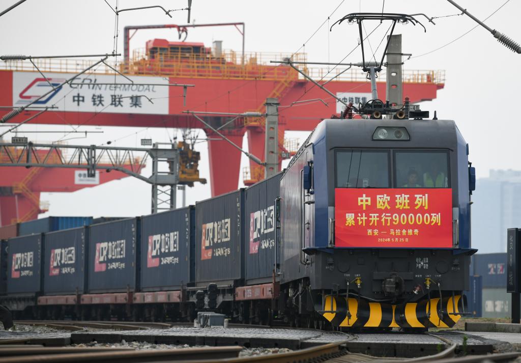 記者從中國國家鐵路集團(tuán)有限公司(下稱國鐵集團(tuán))獲悉,2024年5月25日8時(shí)40分,隨著X8157次中歐班列(西安—馬拉舍維奇)從西安國際港站開出,至此中歐班列累計(jì)開行突破9萬列,發(fā)送貨物超870萬標(biāo)箱、貨值超3800億美元,保持安全穩(wěn)定暢通運(yùn)行。