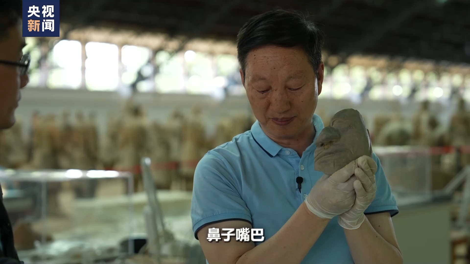 秦始皇帝陵博物院文物保護修復專家 蘭德省:光這一件陶俑的殘片有200多片,它不包括這么小的,總共有200多個殘片。