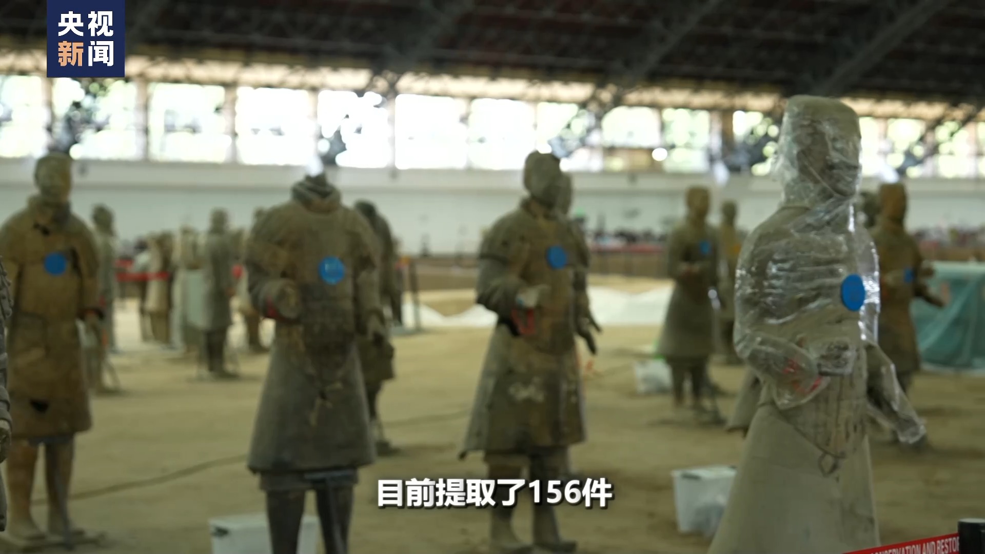 秦始皇帝陵博物院文物保護修復專家 蘭德?。?/strong>第三次考古發(fā)掘,主要在秦俑一號坑T23號探方。在這個方位共挖掘了256件兵馬俑,我們剛才已經(jīng)看到目前提取了156件。其中我們修復了140多件,還有一些我們正在修復。