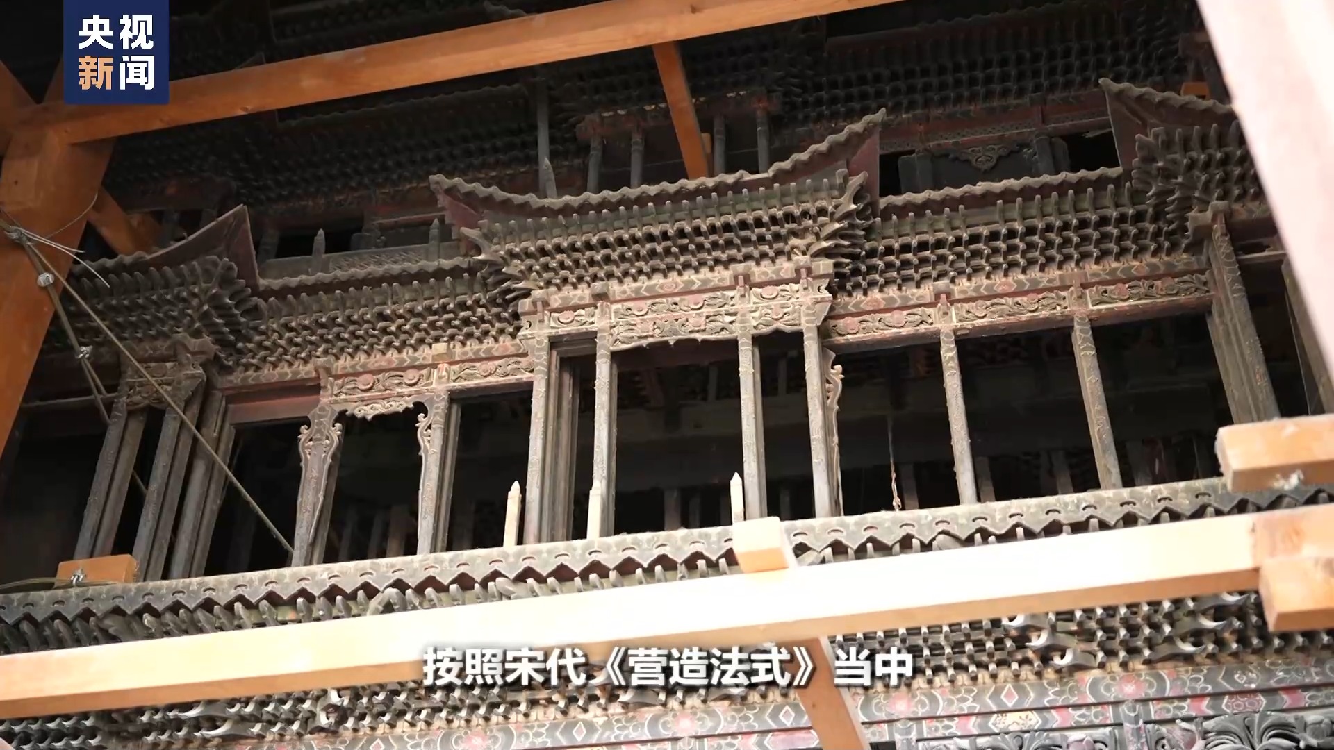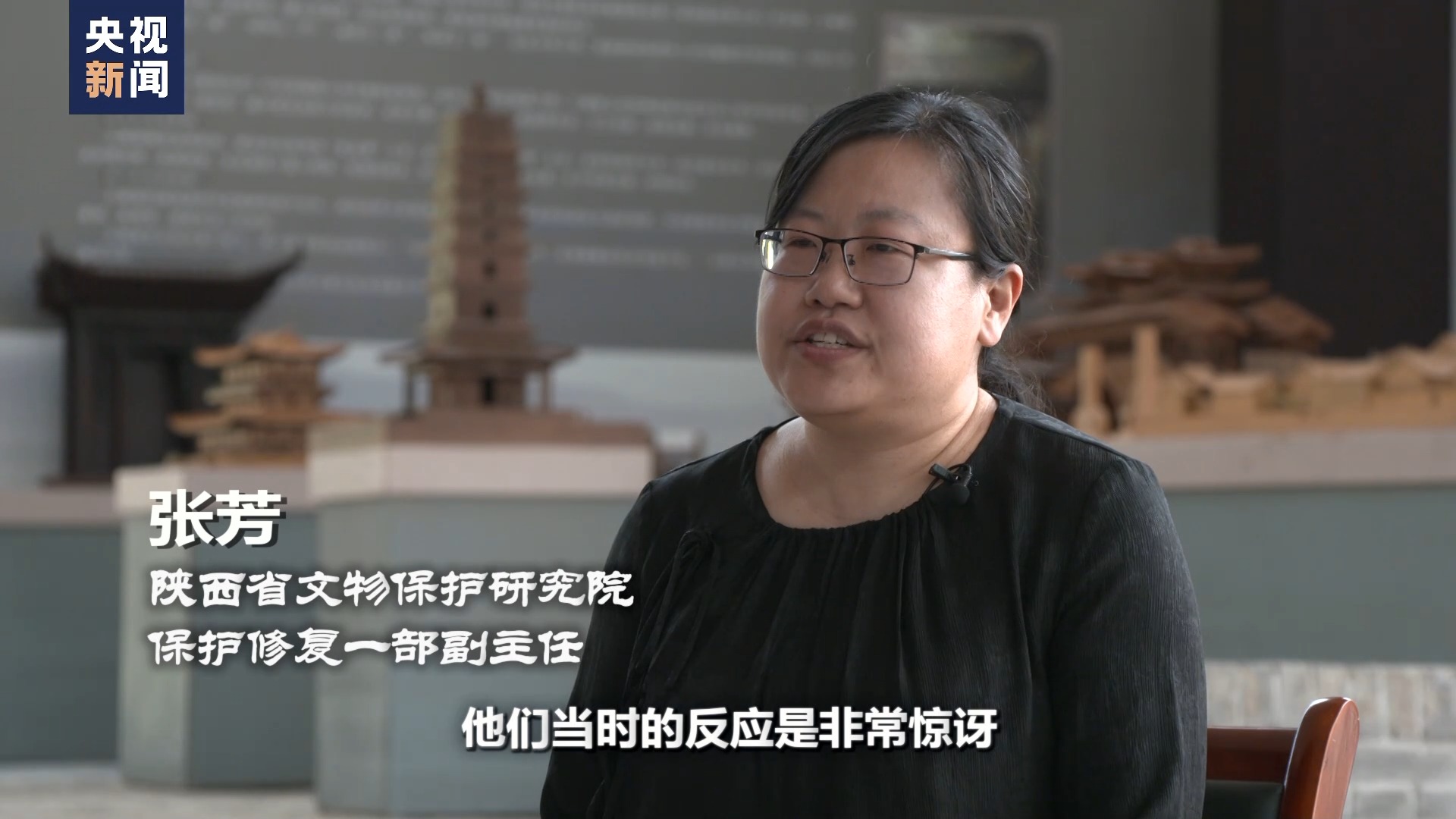 陜西省文物保護研究院保護修復一部副主任 張芳:他們當時的反應是非常驚訝,因為這種純粹的,沒有用一根釘子的榫卯結構層層疊疊,在上面天宮樓閣的一個呈現(xiàn)。他們在法國是完全見不到,他們也想象不到。