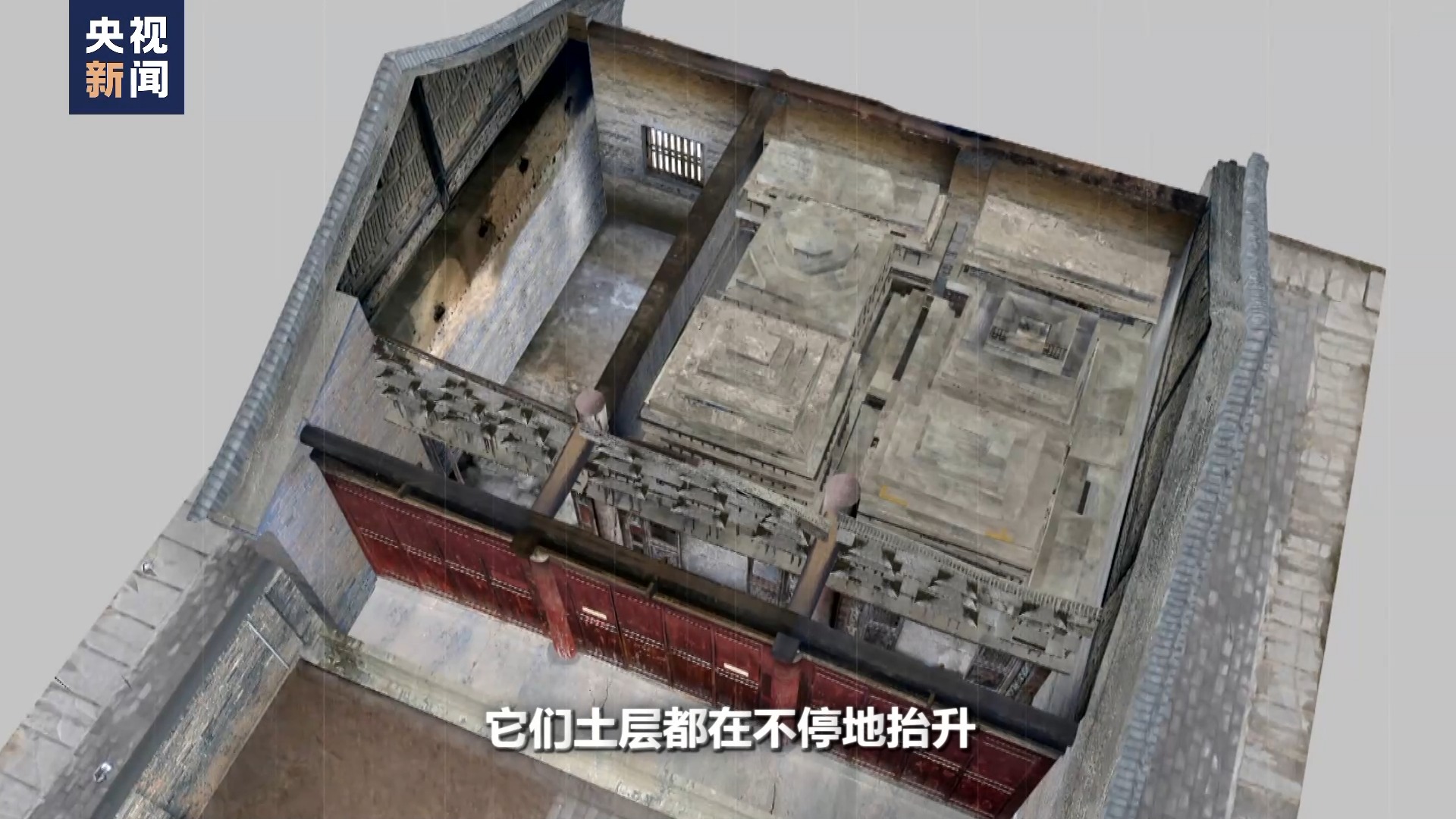 秦始皇帝陵博物院副院長 周萍:基本上到了塔的塔尖位置,它不是上面還有個木塔嗎。木塔現(xiàn)在整體的木質(zhì)維修已經(jīng)基本完成了,它在木臺結構上面貼覆了一層鉛皮,鉛的一些裝置構件,隨著鉛往下貼的過程中,已經(jīng)開始落架。所以我們能登到最高位置。