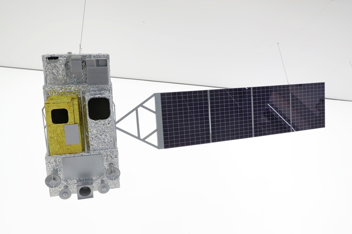 5月24日,在上海市閔行區(qū)的“大零號灣”創(chuàng)新策源館拍攝的風云三號G星氣象衛(wèi)星模型。新華社記者 龔兵 攝