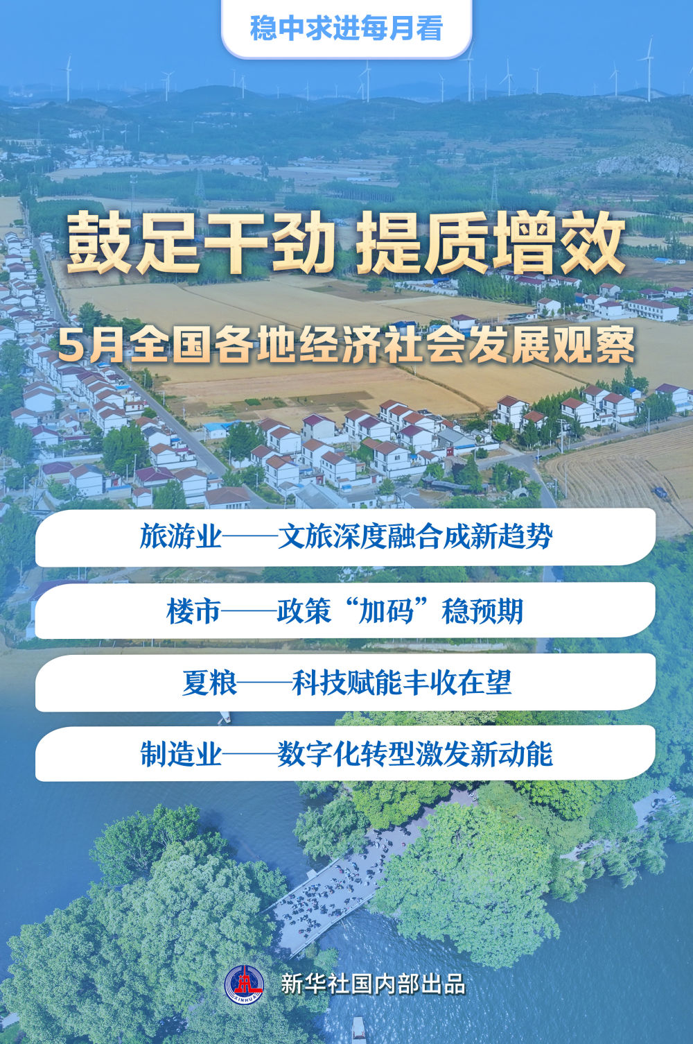 春歸夏至,萬物生長。文旅融合向“深”挺進(jìn),樓市政策優(yōu)化調(diào)整,夏收以科技賦能,制造業(yè)數(shù)字化轉(zhuǎn)型提速……提質(zhì)增效成為5月全國各地經(jīng)濟(jì)社會發(fā)展的突出特點。