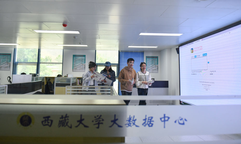 5月30日,尼瑪扎西的學(xué)生在西藏大學(xué)大數(shù)據(jù)中心結(jié)束翻譯軟件測試。新華社記者 晉美多吉 攝