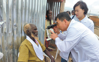 中國醫(yī)生在為吉布提民眾做視力檢查。