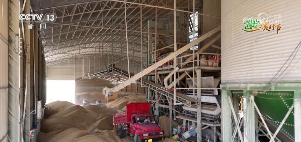 在河南南陽,麥?zhǔn)展ぷ饕鸦窘Y(jié)束。這是南陽鄧州市羅莊鎮(zhèn)的一家糧食收購點(diǎn),種植戶們把剛剛收割完的小麥直接從田里拉來售賣。水分較低的糧食會(huì)直接收到倉庫中,水分較高的糧食則卸在晾曬場中,由烘干設(shè)備進(jìn)行烘干。