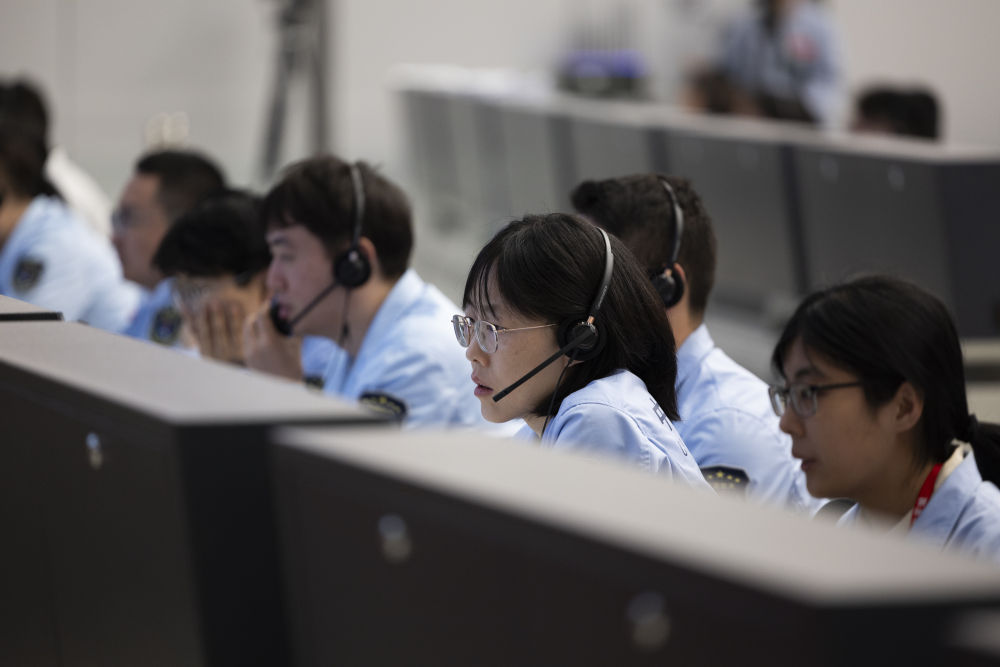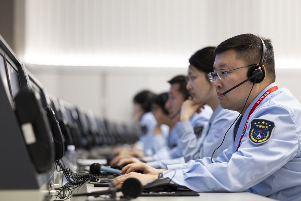 6月4日,在北京航天飛行控制中心,工作人員在監(jiān)測(cè)嫦娥六號(hào)上升器自月球背面起飛狀況。