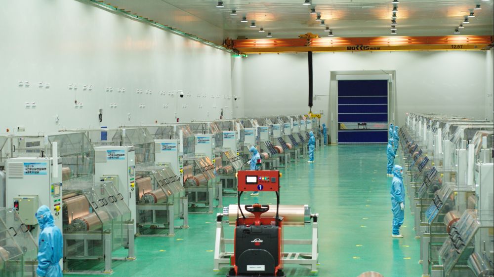 2022年12月15日,江銅銅箔科技股份有限公司生產(chǎn)車間現(xiàn)場。新華社發(fā)(江銅集團(tuán)供圖)