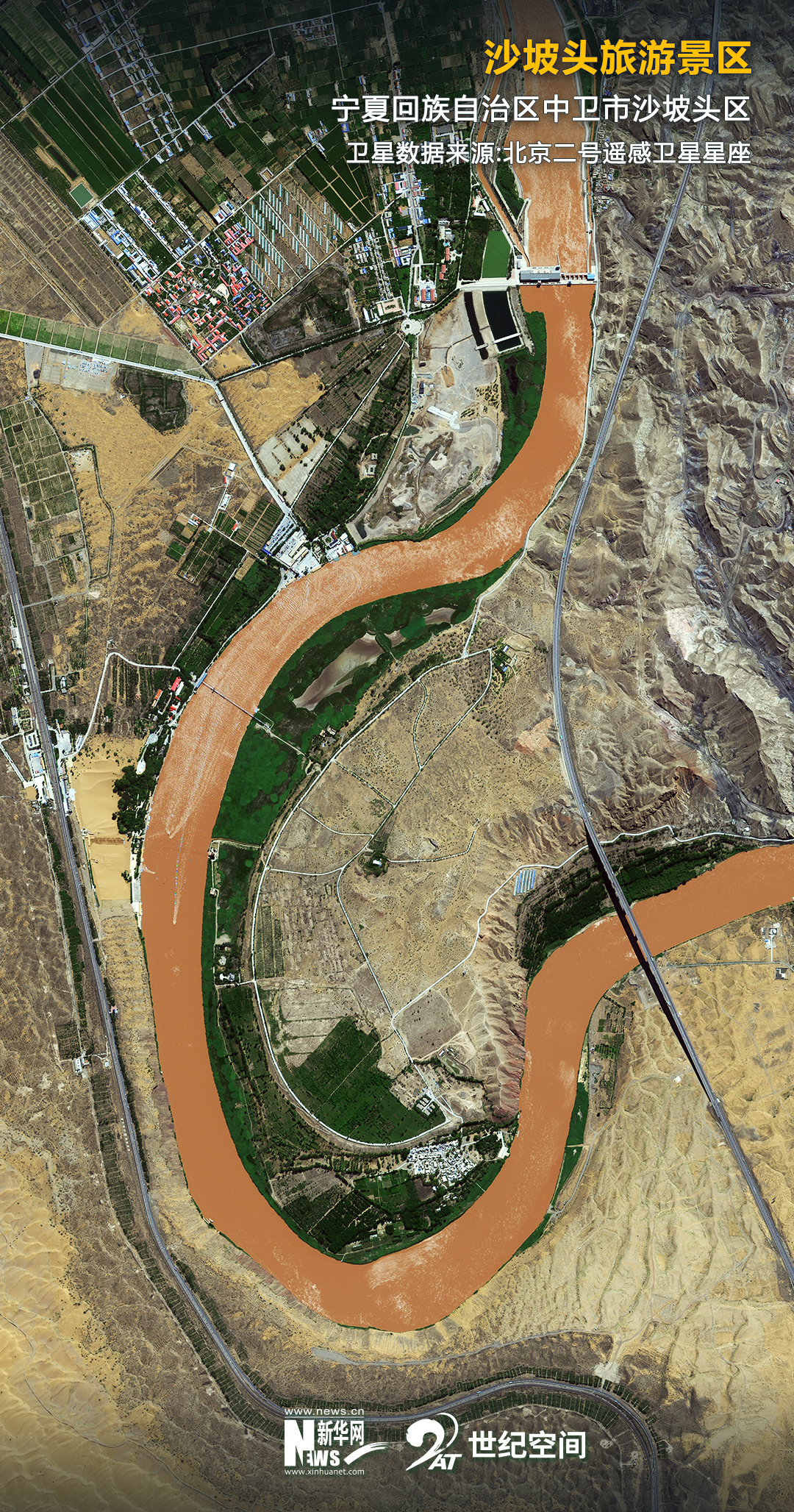 如今,在當?shù)赜嘘P(guān)部門開展的水系疏浚工程影響下,這里成為沙漠濕地的聚集地。黃河流經(jīng)此地,畫出了一道蜿蜒的曲線。河的一頭是騰格里沙漠的無垠瀚海,另一頭被一抹蒼翠鑲嵌在河岸邊。