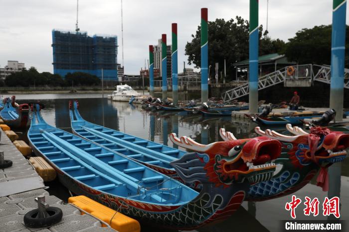 端午將至,穿過臺(tái)北市區(qū)的基隆河上,三腳渡碼頭平日擺放的龍舟使用頻率明顯升高,許多團(tuán)隊(duì)利用周日加緊操槳練習(xí)。