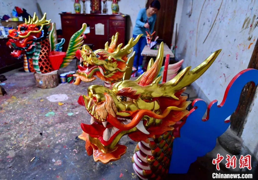 在方莊村的一家龍頭制造廠內(nèi),正在制作中的各式龍頭。龍頭代表著自己所屬村落的信仰和圖騰,因此在龍頭樣式的選擇上,每個客戶都不盡相同。中新社記者 張斌 攝
