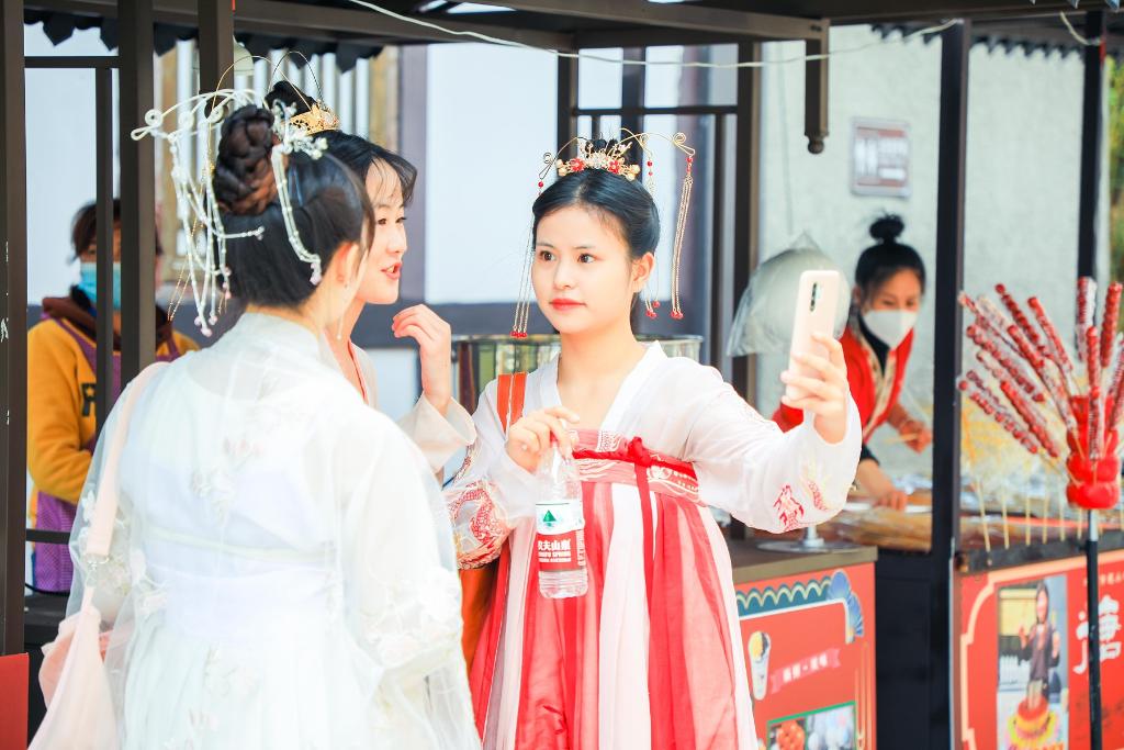 貴州都勻秦漢影視城身穿傳統(tǒng)服飾的游客。(都勻市融媒體中心供圖)