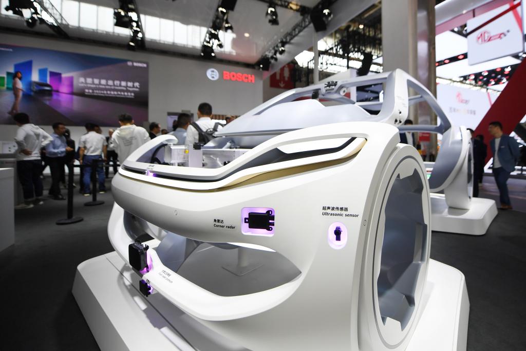 在北京車展上,博世公司展臺展出可用于新能源汽車智能出行解決方案的相關(guān)產(chǎn)品(4月25日攝)。新華社記者鞠煥宗攝