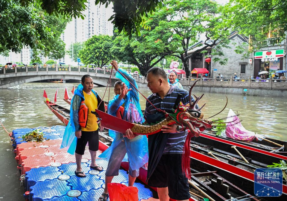獵德村村民舉行活動(dòng),為端午期間的“龍船景”做準(zhǔn)備(6月1日攝)。