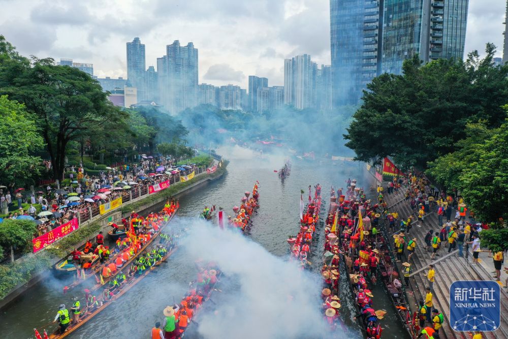 6月10日,國(guó)內(nèi)外游客匯聚在獵德觀賞“龍船景”。“龍船景”是廣府地區(qū)水鄉(xiāng)在端午期間舉辦的一種民俗活動(dòng)。