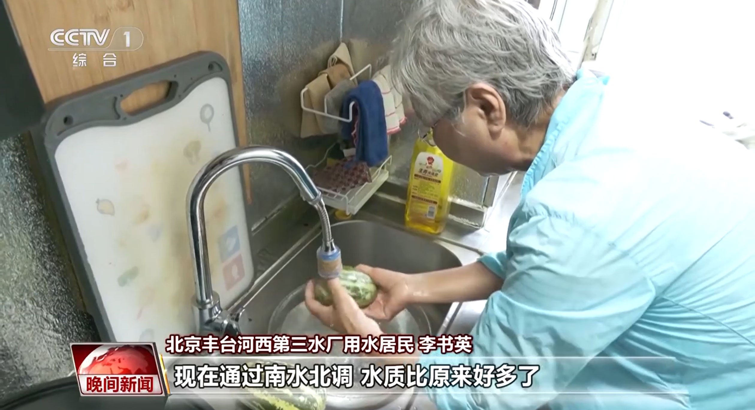 北京豐臺河西第三水廠用水居民 李書英:我們原來(燒)水的時候,用那水壺(燒)開了(水)以后還得沉淀,沉淀十幾分鐘以后再灌暖壺,但是暖壺里水堿也特別多,現(xiàn)在通過南水北調,水質比原來好多了,水堿比原來大大減少。